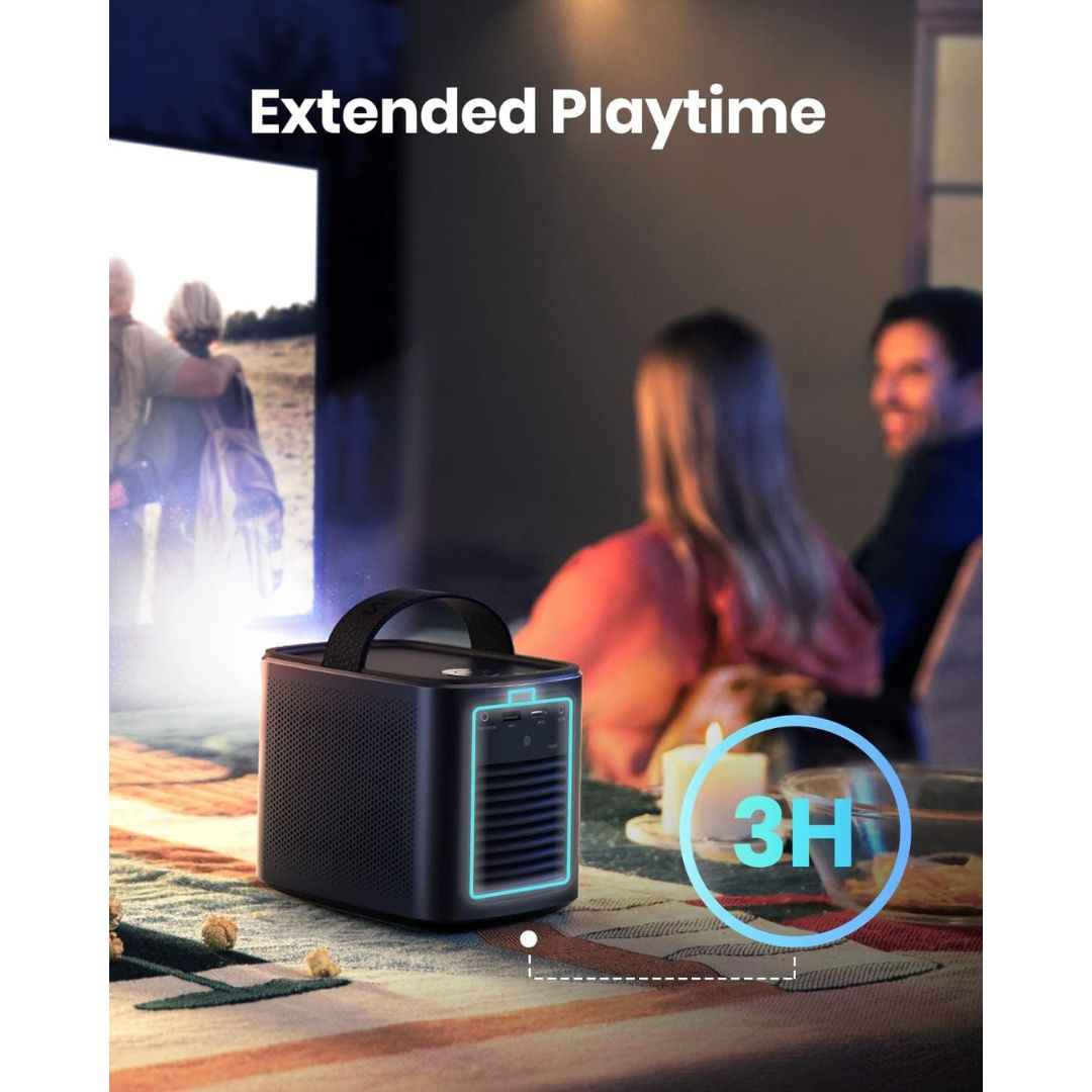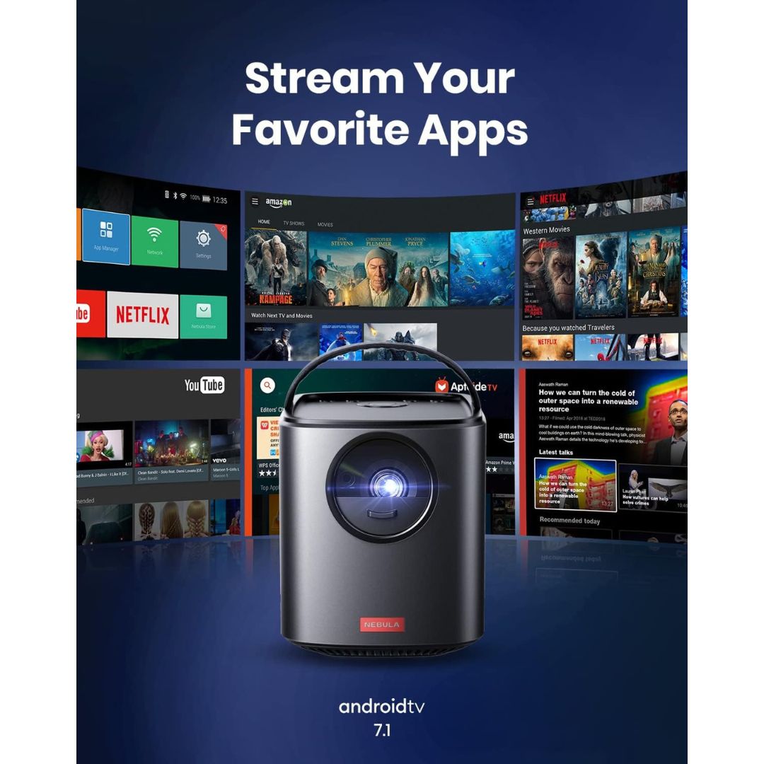 DLP IntelliBright technology projects a radiant 500 ANSI lumen image at razor-sharp 720p for breathtaking video clarity, Dual 10W audio drivers work together to deliver sensational surround sound and deep, resonant bass for a truly immersive outdoor projector movie experience, The built-in 12,500mAh battery delivers 3 hours of non-stop cinema, enough to watch most feature-length films, Watch YouTube, Netflix, and more with Android 7.1 for hours of awesome content on portable projector.