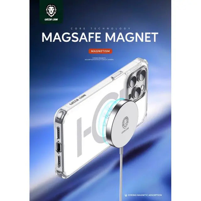 Green Lion Series 8 Transparent Case for iPhone 14/Pro/Max/Plus offers MagSafe compatibility, bumper protection, and drop protection, ensuring your phone remains scratch-free and secure while maintaining easy access to all ports, cameras, and buttons.