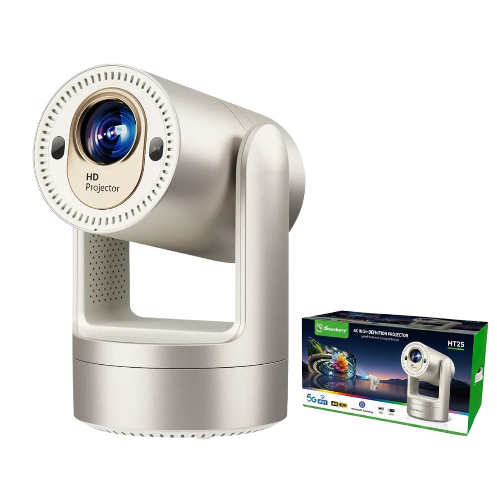 Enjoy portable, high-quality entertainment anywhere with the Smartbarry HT25—a smart projector with a built-in rechargeable battery. Featuring a 2.69-inch LCD light source, 200 ANSI lumens brightness, and 1280×720P HD resolution, it delivers clear and vibrant visuals for movies, gaming, and presentations.